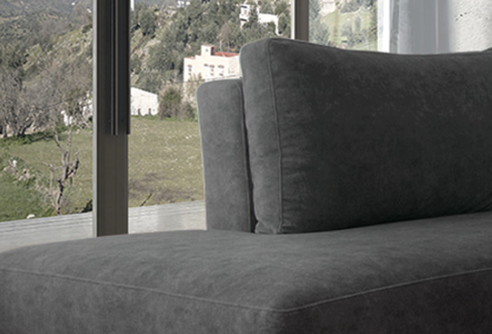 Οι επιβλητικές, μεγάλες μαξιλάρες προσφέρουν πλούσια άνεση και γεμίζουν τον καναπέ με όγκο και πολυτέλεια. Το κάθετο μπράτσο, σε συνδυασμό με προσεγμένες επιλογές υφάσματος, συμβάλλει στη δημιουργία ενός ισορροπημένου και αισθητικά ανώτερου συνόλου. Η επιλογή του κατάλληλου υφάσματος μπορεί να μεταμορφώσει πλήρως την αισθητική του καναπέ, δίνοντας τη δυνατότητα να ενσωματωθεί ιδανικά σε οποιονδήποτε σύγχρονο χώρο.